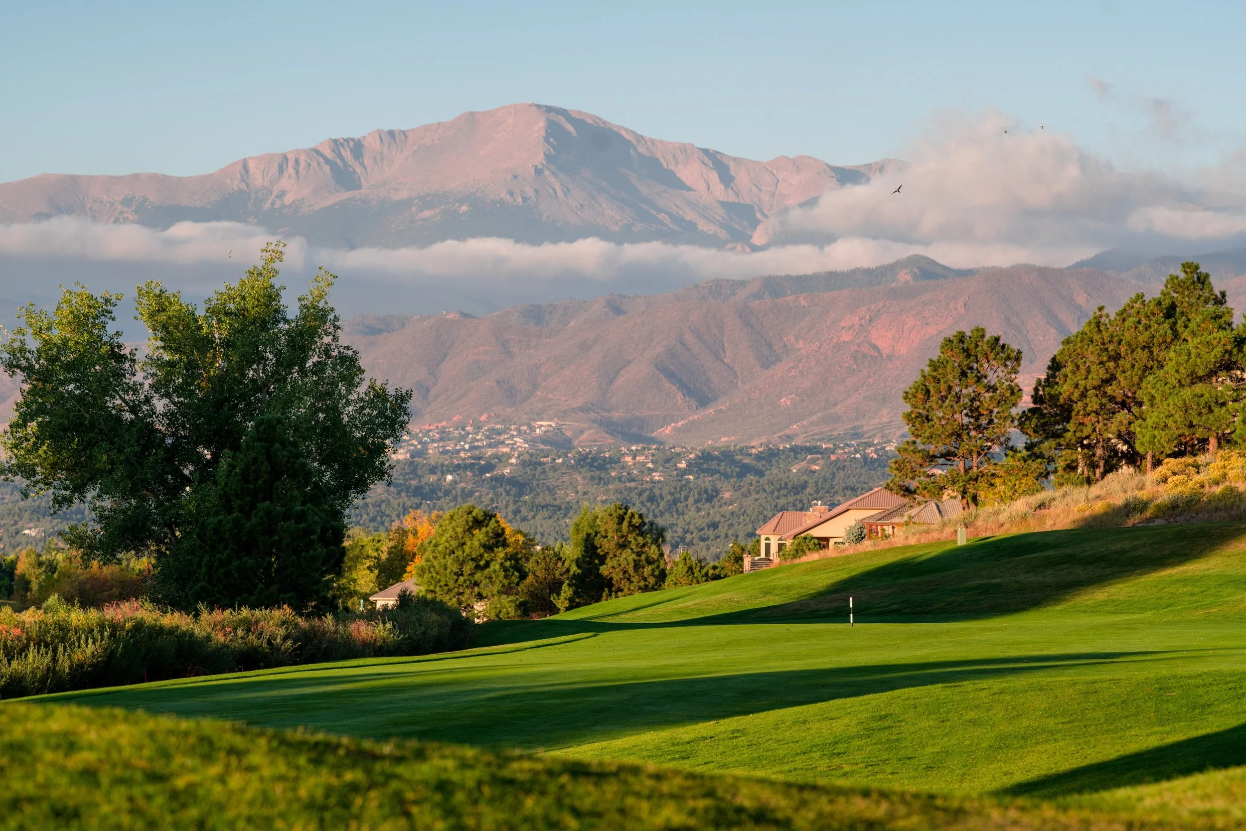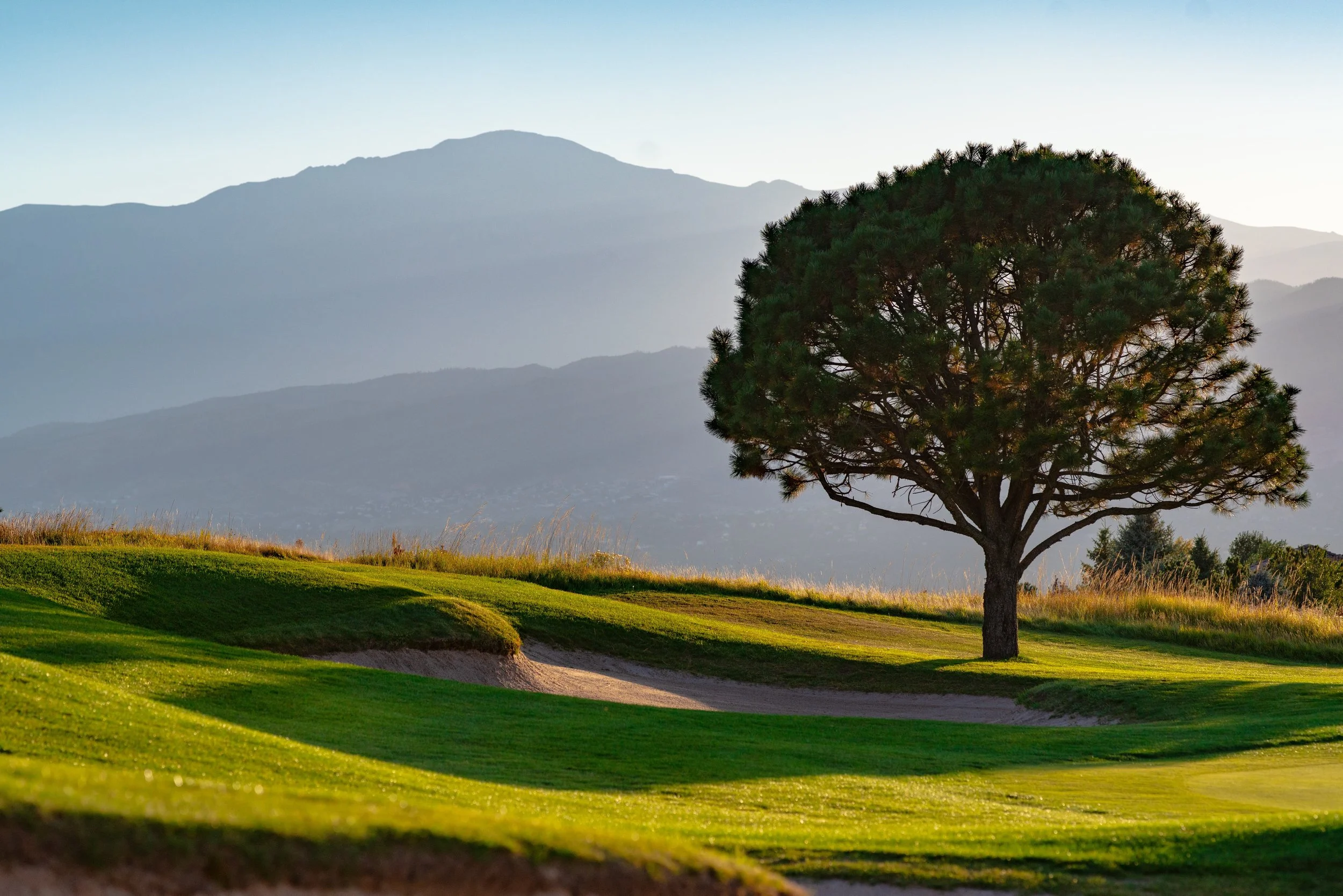 The course offers dramatic views of Pikes Peak, the Front Range, and the entire skyline of Colorado Springs. With four sets of tees to accommodate players of all abilities, the course ranges from 5,314 yards from our forward tee to 7,194 from the Championship tee.